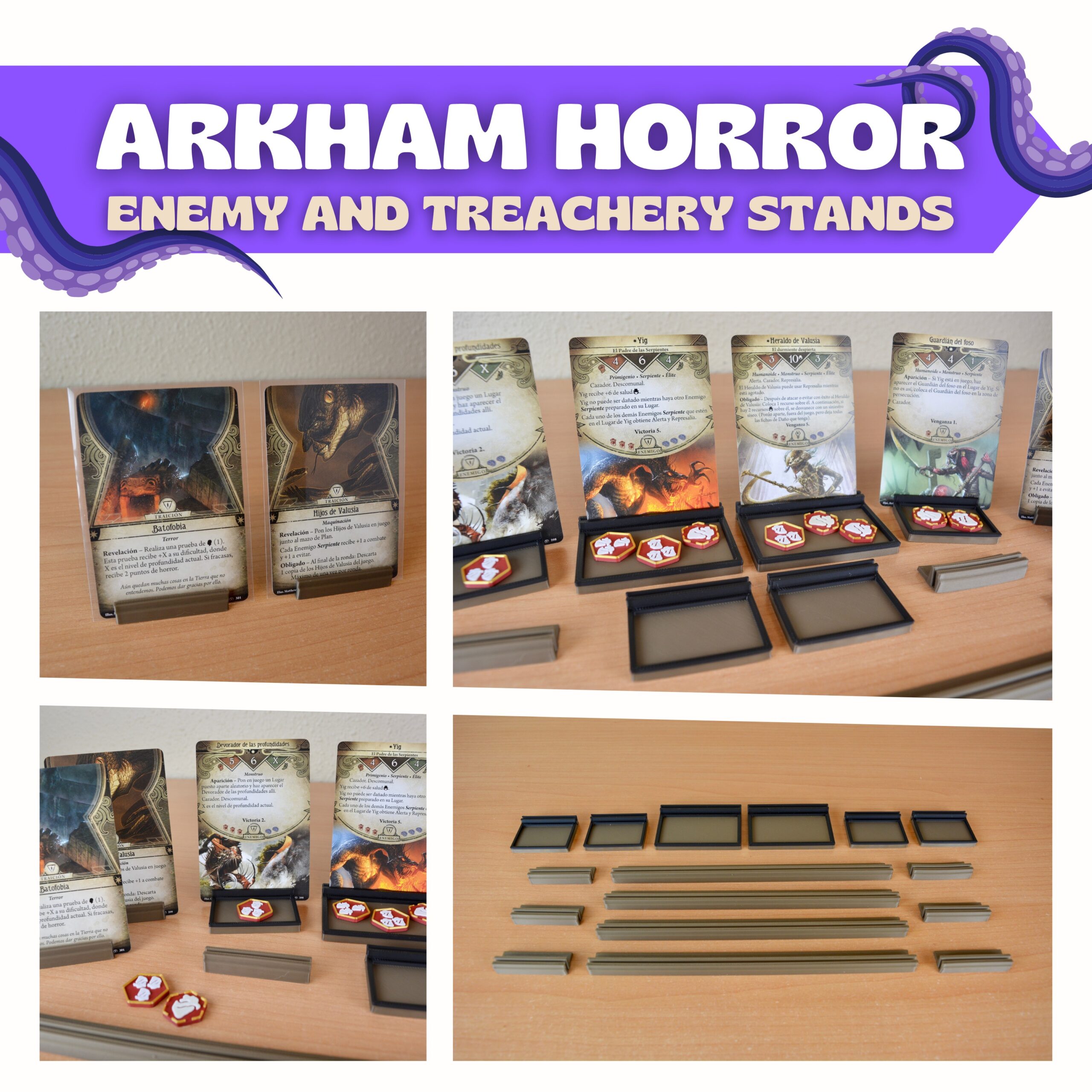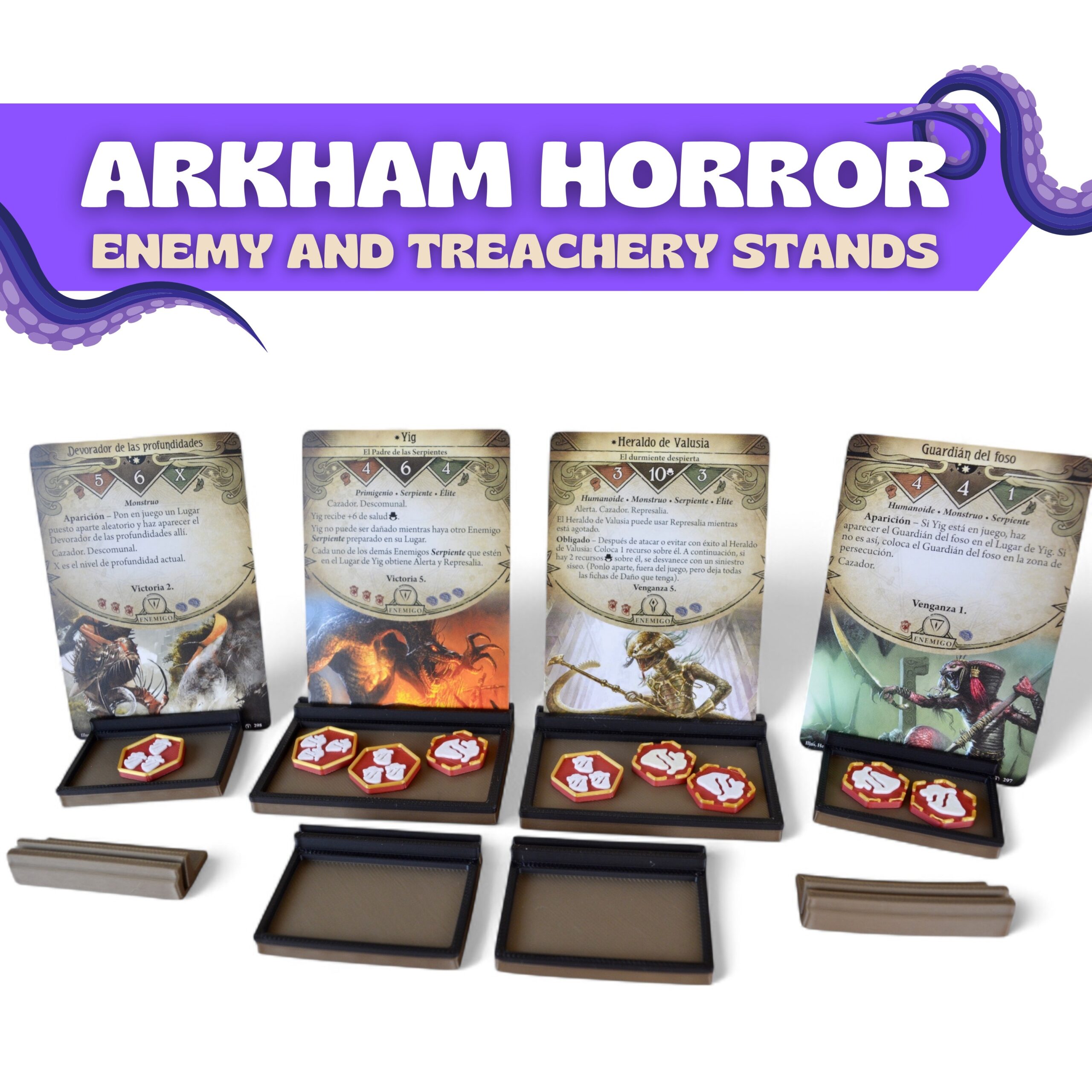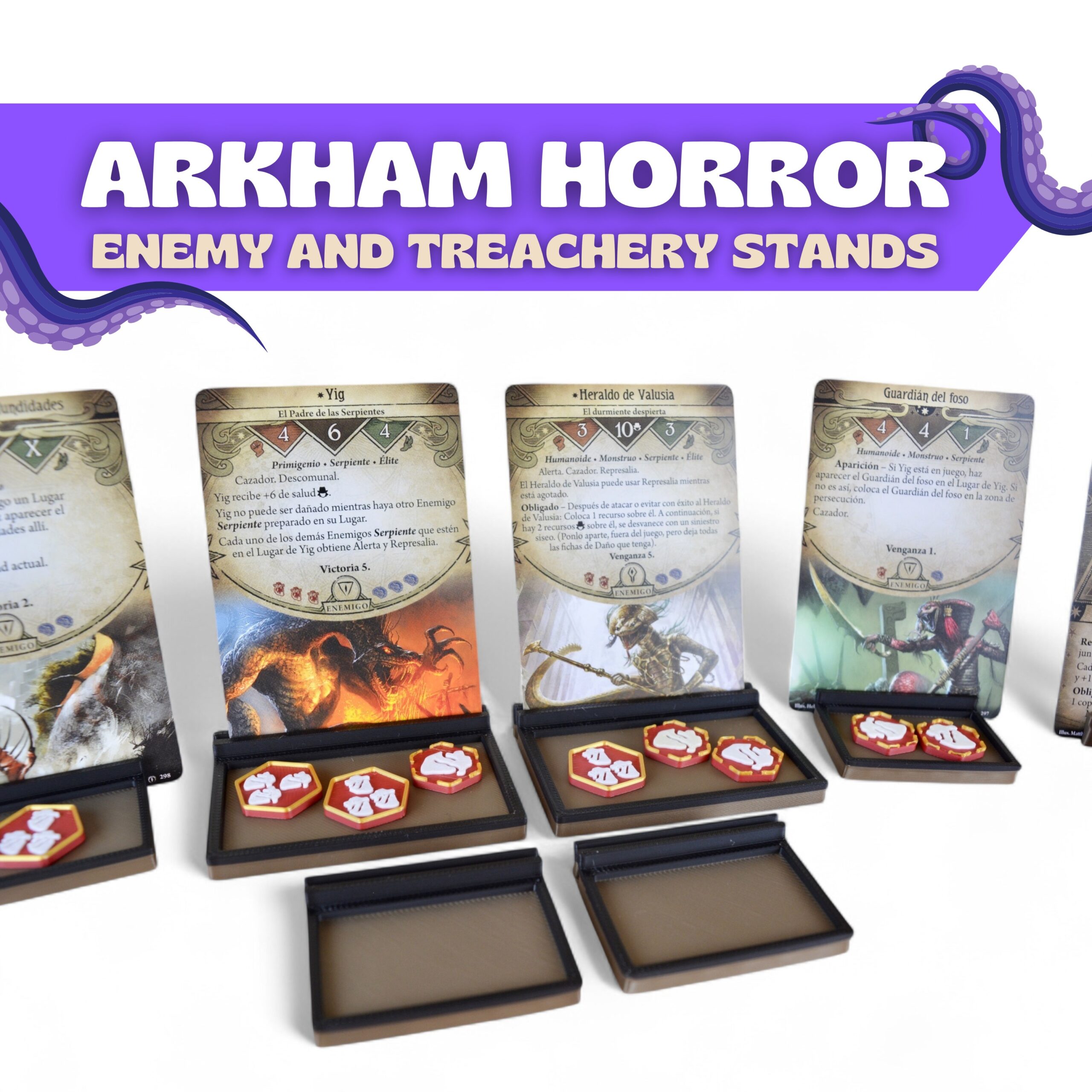 Bring the enemies of Arkham to life with our deluxe 3D enemy card stands. These holders keep every enemy card upright and in full view, making each encounter more immersive and menacing. Feel the tension rise as your adversaries loom over the table, ready to challenge your habilites.