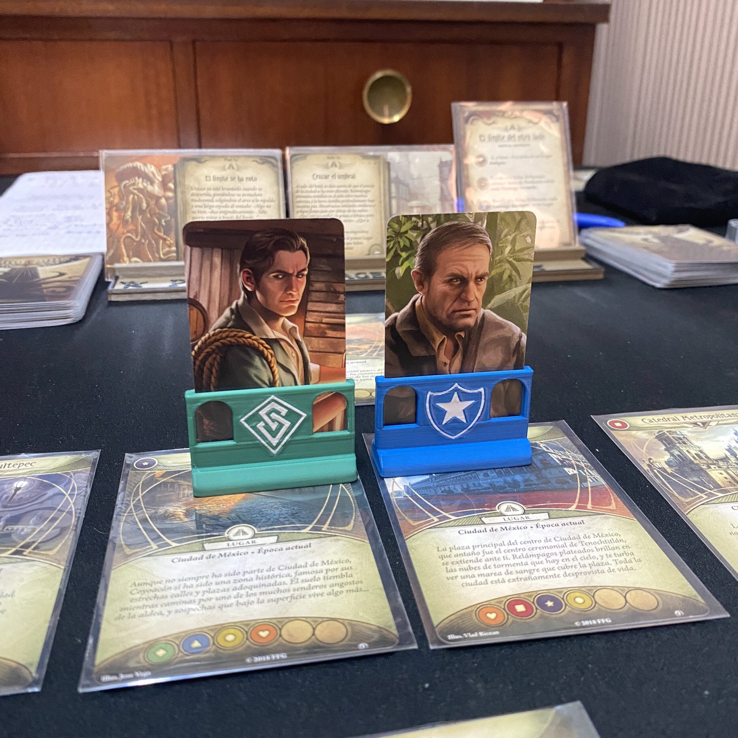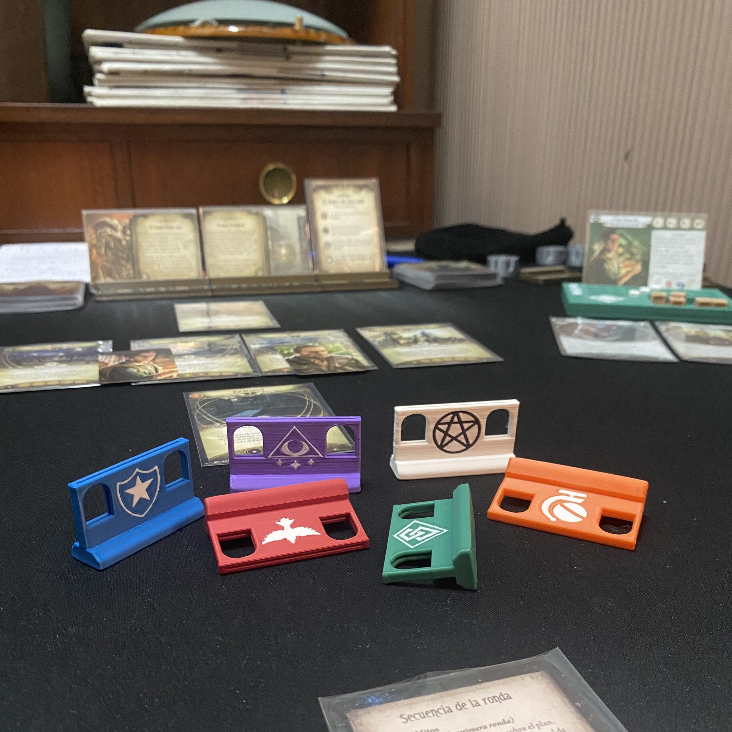 As first level enthusiasts of this magnificent game, we have designed these stands compatible with Arkham Horror LCG investigators samll cards. Each investigator class has its own stand, to provide the game with an exquisite level of immersion and detail.