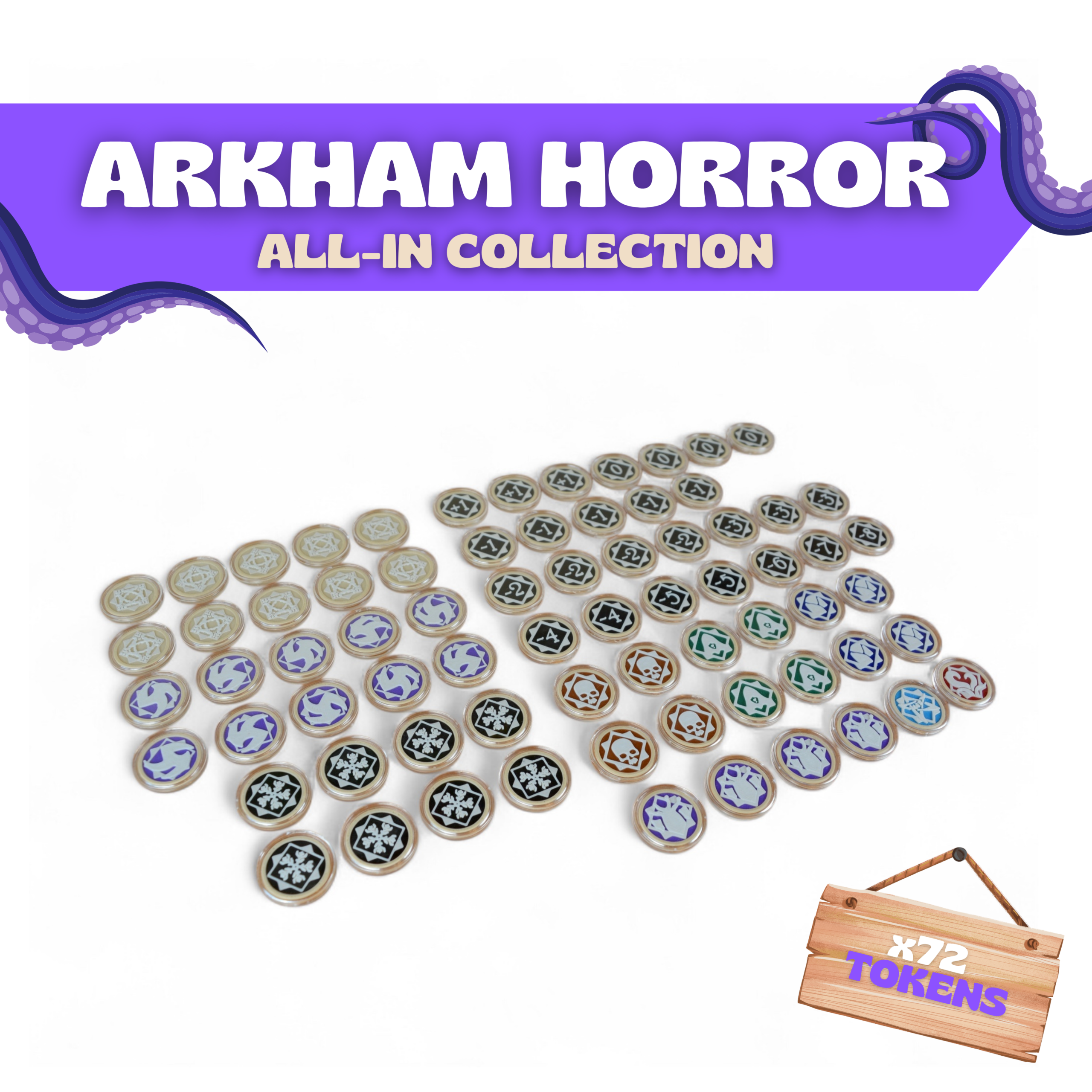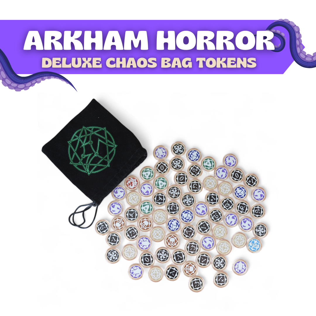 ✨ Upgrade your Arkham Horror LCG experience with this complete set of Deluxe 3D Chaos Tokens! This bundle includes 72 beautifully crafted tokens designed to replace the original cardboard chaos chits, bringing elegance, durability, and a truly immersive touch to every game session.
