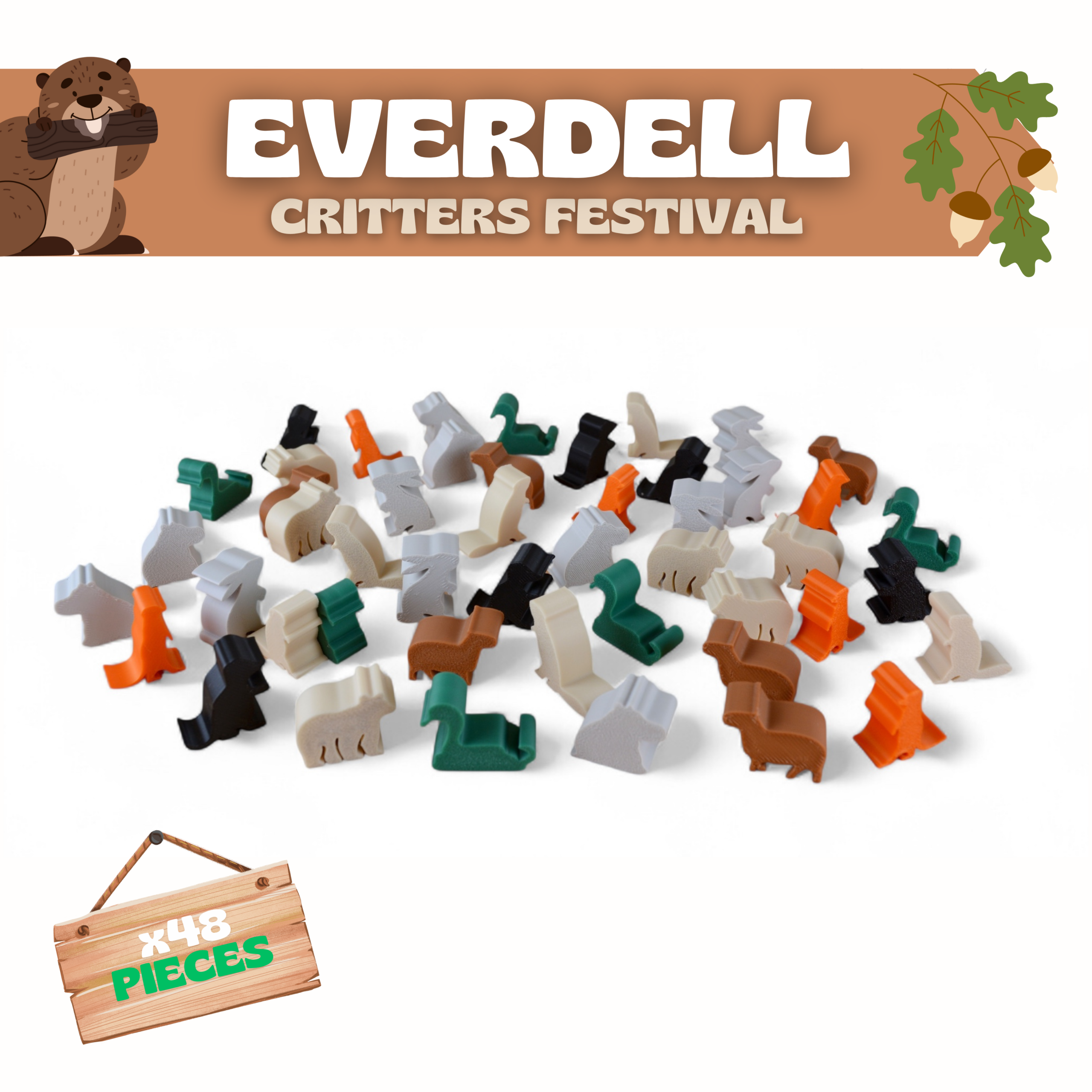 – x48 Exclusive Animal Meeples (Bears, Capybaras, Hippos, Beavers, Rabbits, Meerkats, Moles & Snakes)
