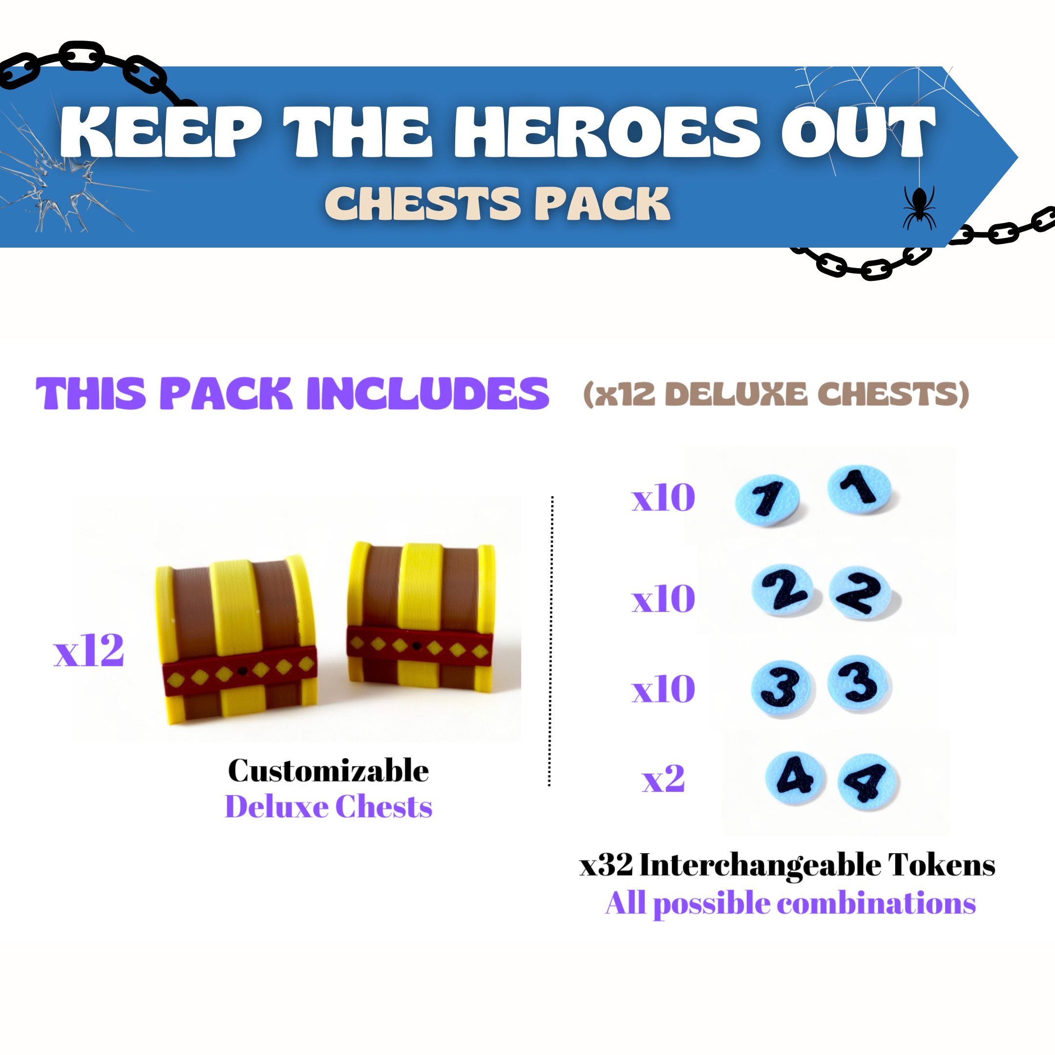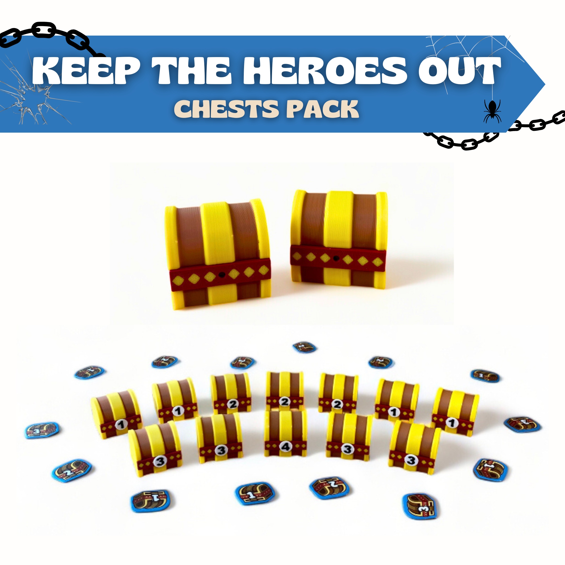 ⚔️ Protect your treasures from those pesky heroes with luxurious 3D-printed chests for Keep the Heroes Out! Add a touch of luxury to your dungeon, organize your chests in style, and make every victory even more satisfying. Don’t let a single coin slip away!